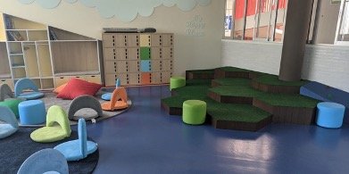 • Áreas de aprendizaje informal: Aprovecha los pasillos o cualquier espacio subutilizado para crear áreas de aprendizaje informal. Unos pocos cojines o alfombras pueden transformar un rincón en un espacio de lectura o descanso.