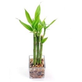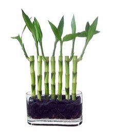 ![]() | Bambú de la Suerte (Dracaena sanderiana) Simboliza buena suerte y prosperidad, también ayuda a purificar el aire. Puede crecer en agua o en tierra, necesita luz indirecta y riego moderado. |